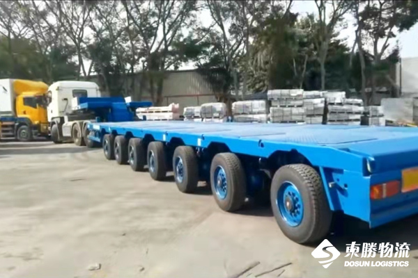 中港平板车:东胜物流中港平板车普通板长12.米,宽2.4米,高1.3米 5轴可装载25吨重量,6轴可装载28吨。 主要针对超长、超大,超重机器设备等的运输。